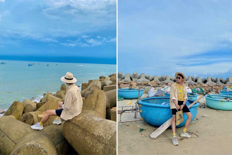 Đến đây, du khách sẽ nhận được cái cảm giác bình yên, thanh thản, hòa với nét mộc mạc, bình dị của làng chài ven biển với những chiếc thúng, những chiếc thuyền, lưới đánh cá và những ngư dân hiền lành chất phác.