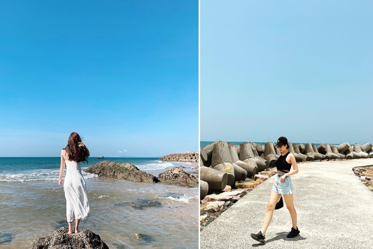 Bạn có thể tắm biển, phơi mình dưới cát vàng óng ánh hay thử sức mình với lướt sóng, dù lượn, mô tô nước… cũng rất thú vị. Hay check-in bãi đá Ông Địa, bạn có thể ghi lại những khoảnh khắc đẹp khi đứng trước những mỏm đá có bọt tung trắng xóa.