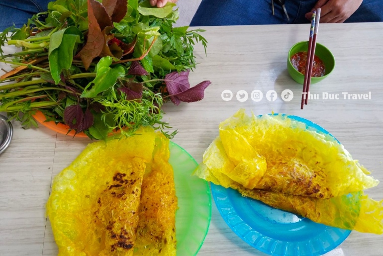 Nước chấm tuy đơn giản nhưng là “linh hồn” kết nối mọi hương vị. Nước mắm được pha theo khẩu vị địa phương, có vị chua ngọt hài hòa, thêm chút ớt cay nồng, khiến từng cuốn bánh xèo trở nên đậm đà và khó quên hơn.