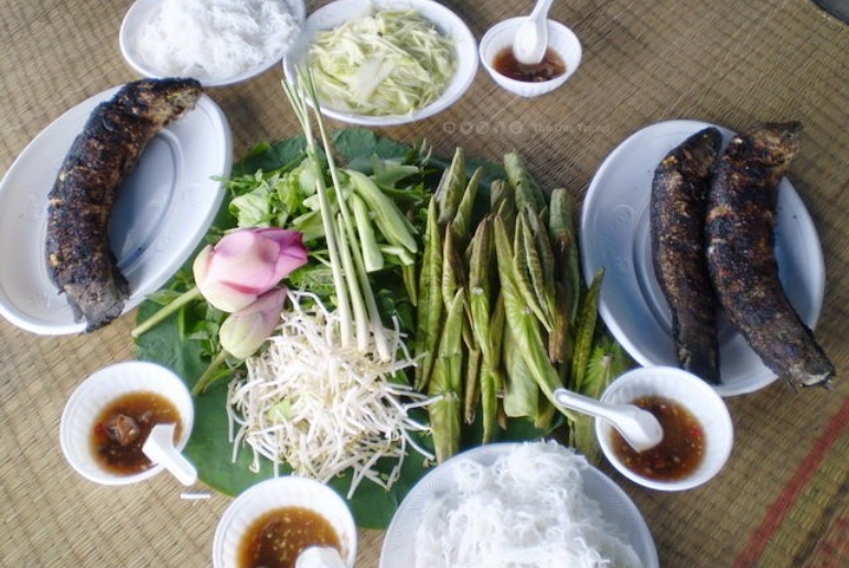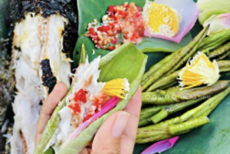 Giữa không gian mênh mang của đồng sen, mùi khói rơm quyện trong gió chiều và tiếng nước vỗ bờ lặng lẽ, không có món ăn nào gợi đúng “chất miền Tây” hơn cá lóc nướng trui cuốn lá sen non. Đây không chỉ là một món đặc sản, mà là trải nghiệm ẩm thực gắn liền với đời sống, thiên nhiên và con người vùng sông nước Nam Bộ.