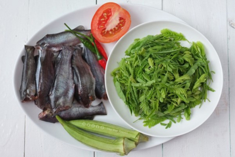 Nếu cá chốt là linh hồn, thì rau và gia vị chính là yếu tố tạo nên chiều sâu hương vị cho món canh. Lá me non hoặc cơm me được sử dụng để tạo vị chua thanh dịu nhẹ đặc trưng, khác biệt hoàn toàn với các vùng miền khác thường dùng dứa hoặc khế chua.