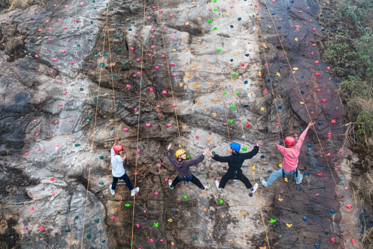 Tiếp đó là nhảy Bungee từ trên cao vách núi xuống, đến khi cách bề mặt tiếp xúc không xa người chơi sẽ được kéo lên. Còn một trò chơi khác nữa có là chơi dù lượn. Mỗi lần bay sẽ dao động từ 10 - 15 phút. Đây cũng là trải nghiệm khiến ai cũng thích mê ngay từ lần đầu tiên và là trò chơi mà bất cứ bạn trẻ nào cũng nên thử 1 lần trong đời. Tất cả các trò chơi này đều thử thách lòng can đảm của bản thân đồng thời đem đến cảm giác sợ hãi nhưng phấn khích, thích thú cho du khách.