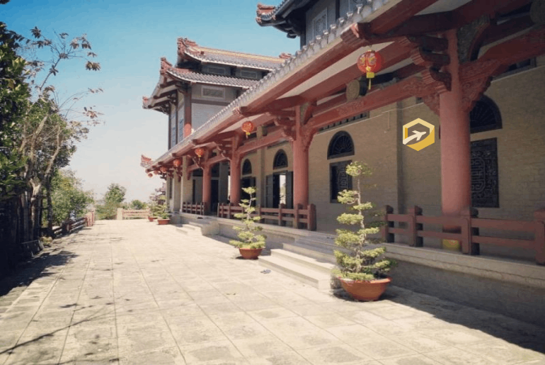 Mỗi góc sân được thiết kế mang nét đặc sắc riêng và thu hút du khách check in. Đồng thời du khách có thể tận mắt nhìn thấy các nhà sư tập trung làm lễ vào mỗi sáng sớm. Giây phút ấy giữa đất trời mênh mông, con người đối diện với chính mình và tự chiêm nghiệm về cuộc sống. Du khách cũng có thể chụp ảnh cùng vườn sỏi trắng nằm ngay giữa sân chùa và được xem là điểm nhấn đặc biệt của khuôn viên. Lưu ý bỏ dép khi tiến vào khu vực này và không được dẫm chân lên sỏi nhé.
