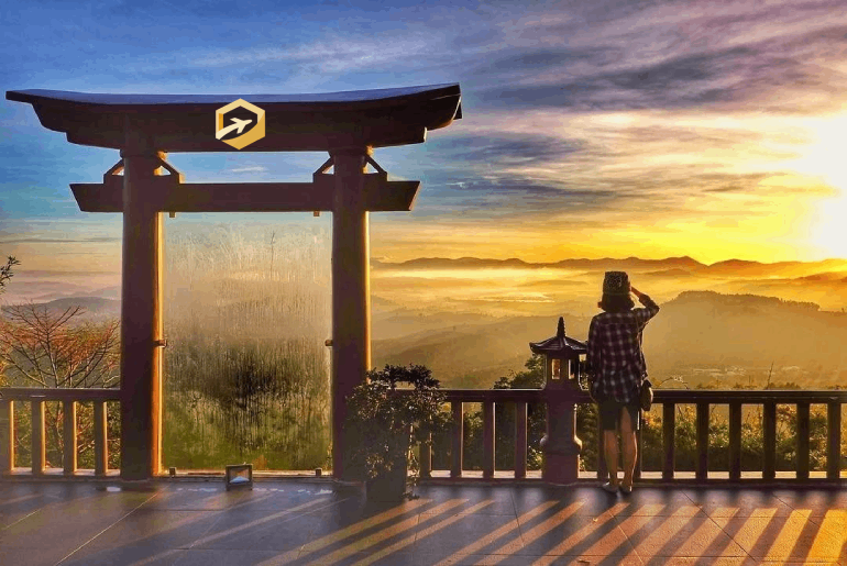 Đứng từ cổng trời ngắm khung cảnh hùng vĩ của núi rừng, nhất là lúc bình minh và hoàng hôn cảnh đẹp “rụng tim” khó cưỡng lại. Những buổi sớm ánh nắng yếu ớt trong làn sương mờ ảo bao trùm lên cả một không gian mênh mông, những quả đồi từ xa như đang khoác lên mình tấm áo voan mềm mỏng đầy thướt tha.