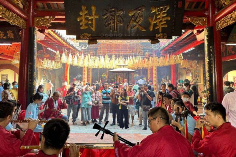 Rằm tháng Giêng là lễ vía đầu năm – thời điểm đông khách và sôi động nhất. Sau những ngày Tết náo nhiệt, người dân Chợ Lớn lại tụ họp về chùa để cầu nguyện một năm mới bình an, tài lộc, buôn bán thuận lợi. Không khí lúc này tràn ngập sắc đỏ của đèn lồng, khói hương nghi ngút bay lên trời, tiếng trống lễ vang vọng và tiếng tụng niệm nhẹ nhàng tạo nên bầu không khí linh thiêng khó tả.