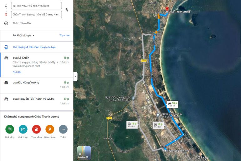 - Bạn có thể di chuyển đến chùa Thanh Lương từ trung tâm thành phố Tuy Hòa bằng cách chạy theo những cung đường như sau: