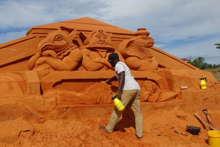 Điều đặc biệt là những bức tượng khổng lồ tại đây được hoàn thành bởi các nhà điêu khắc chuyên nghiệp đến từ 12 quốc gia như Hà Lan, Canada, Brazil, Mỹ, Nhật… đã mang đến vẻ sống động cho những bức tượng cát.