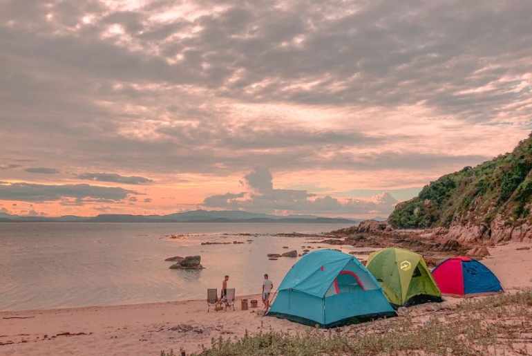 Cắm trại trên bãi biển vừa ngắm hoàng hôn trên biển vừa thưởng thức BBQ thì còn gì thích bằng