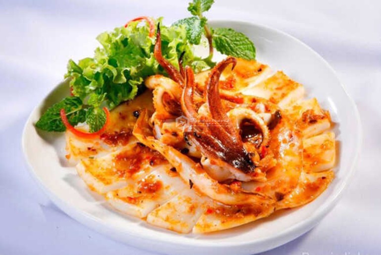 Món mực nướng ớt xanh có hương vị đậm đà của muối, gia vị cùng với vị cay nồng của ớt xanh, tất cả thấm đượm vào từng miếng mực nướng màu vàng nhẹ làm món ăn thêm phần cuốn hút. Cắn một miếng và cảm nhận mực ngọt ngọt, không bị dai, ngấm đều gia vị, vừa ăn và rất ngon miệng, nhớ ăn kèm rau thơm, dưa leo để món ăn tròn vị hơn nhé!