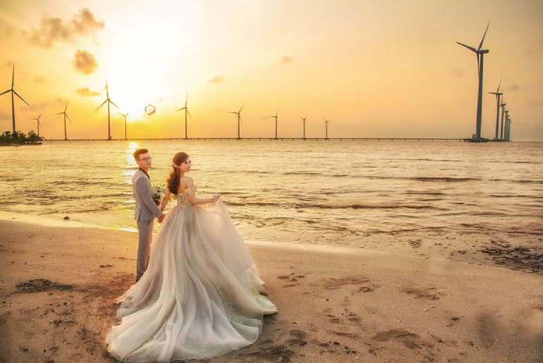 Nếu có dịp ghé thăm Cánh đồng điện gió Bạc Liêu vào những buổi chiều hoàng hôn, bạn sẽ nhận thấy từng khoảnh khắc nơi đây thật đáng giá. Hình ảnh mặt trời từ từ lặn xuống khỏi mặt biển để lại một nền trời vàng rực; điểm tô cho những cánh quạt khổng lồ. Không gian đầy kỳ ảo và nên thơ này chắc chắn sẽ đọng lại trong bạn những cảm xúc khó quên đấy.