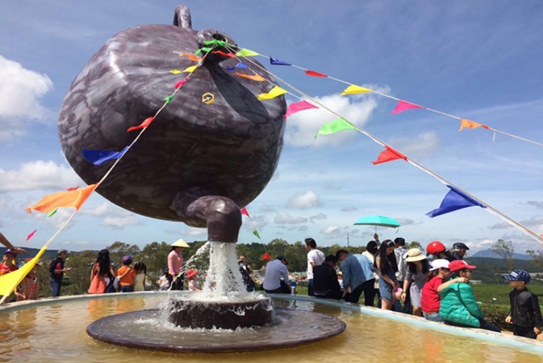 Nằm cách trung tâm thành phố 30km về hướng Tây khoảng 45 phút đi xe trên một quãng đường dài xung quanh bao vây bởi rừng thông xanh, đến nơi du khách sẽ thấy trước mắt mình hiện ra một khoảng không gian mênh mông của đồi chè xanh mướt có diện tích rộng gần 220 héc ta, nơi ấy còn có một tác phẩm đã ghi dấu ấn gần 100 năm thành lập nên nhà máy trà Cầu Đất, bình trà ấy cao 2,6m ngang tận 7,1m và cân nặng lên đến 3 tấn, nếu có dịp đến đây tham quan chắc chắn các bạn sẽ thích thú khi tận mắt nhìn thấy hình ảnh này.