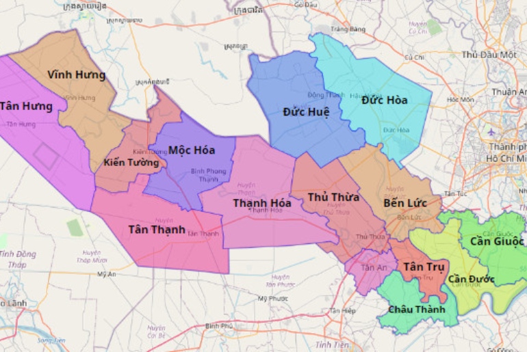Long An nằm ở vị trí cửa ngõ miền Tây Nam Bộ, cách TP. Hồ Chí Minh khoảng 45 – 60 km tùy điểm đến cụ thể.