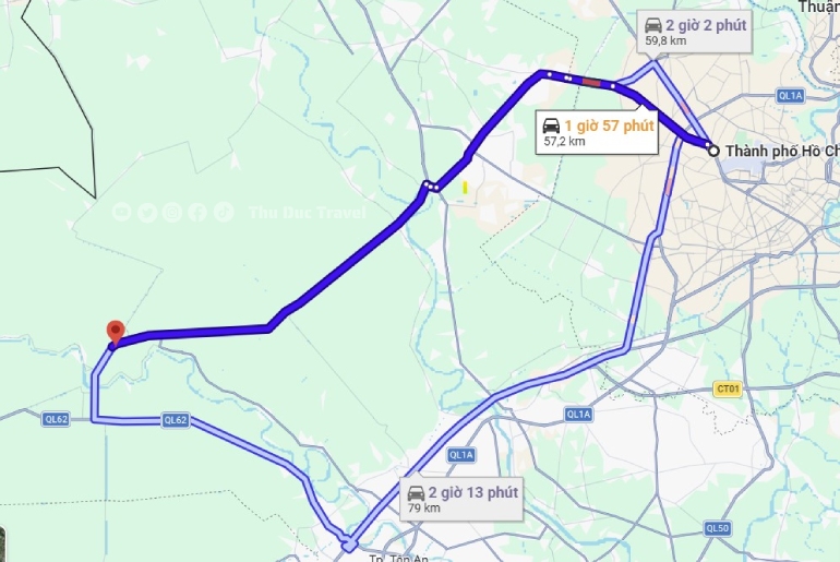 Từ TP. Hồ Chí Minh, du khách có thể lựa chọn nhiều cung đường để đến Long An: