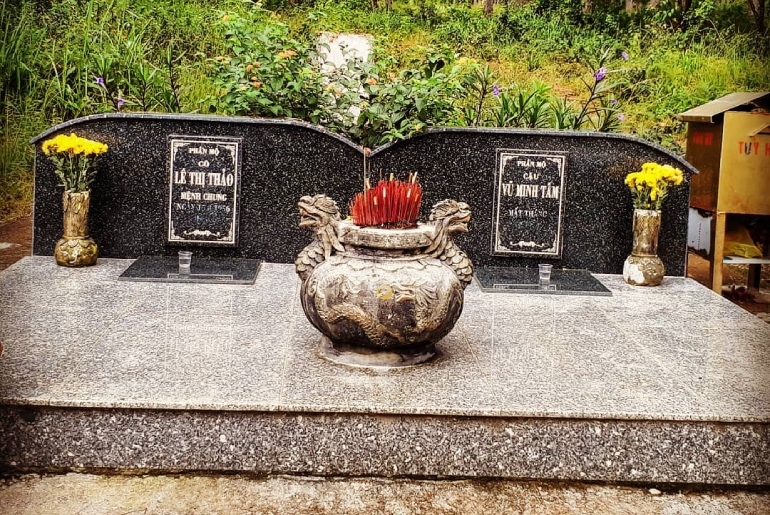 Gia đình, bạn bè đã chôn xác anh kề bên ngôi mộ Thảo và tạo thành ngôi mộ đôi nổi tiếng.
