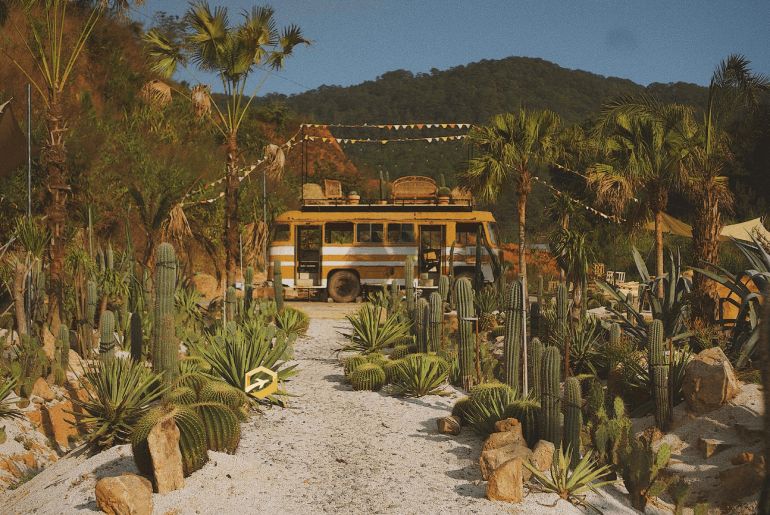 Khuôn viên Kombi Land rất rộng rãi với vô vàn những tiểu cảnh được bài trí khéo léo, mang đến không gian tham quan lý tưởng dành cho du khách. Những chiếc bus rải rác trong khuôn viên cùng xương rồng chính là điểm nhấn đầy độc đáo và ấn tượng của Kombi Land. Như vùng đất của những giấc mơ, bạn có cảm tưởng như chính mình đang lạc bước giữa sa mạc hoang vu, nơi nhìn quanh chỉ thấy cát vàng cùng lớp lớp xương rồng cứng cỏi. Những chiếc bus trong Kombi Land được cải tạo và trang trí hết sức đáng yêu với sắc màu rực rỡ, khiến cả không gian như bừng sáng trong thế giới sắc màu tươi tắn.