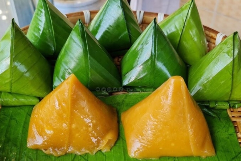 Bánh ít ở đây được làm từ bột nếp dẻo mịn màng, bọc nhân đậu xanh hoặc dừa ngọt thanh, gói gọn trong lá chuối tươi xanh mướt. Độ mềm mượt của vỏ bánh hòa quyện cùng nhân ngọt bùi bên trong. Món này không chỉ ngon miệng mà còn là món quà ý nghĩa để mang về cho gia đình đấy!