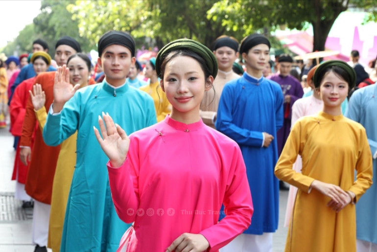 Một trong những hoạt động được mong chờ nhất là diễu hành cổ phục truyền thống với gần 1.000 người mặc trang phục các triều đại Việt Nam. Từ áo giao lĩnh thời Lý – Trần, áo tấc thời Lê, áo dài ngũ thân thời Nguyễn, cho đến áo dài cách tân hiện đại – tất cả được tái hiện chân thực, biến con đường diễu hành thành cuộc hành trình xuyên thời gian.