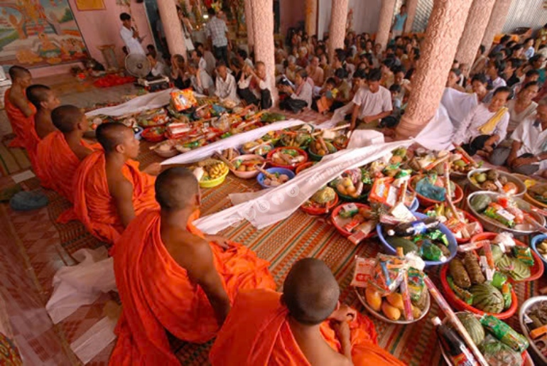 Lễ hội thường được tổ chức tại chùa Khmer, tại sân nhà hoặc những nơi rộng rãi, thoáng đãng, có thể nhìn thấy Mặt Trăng rõ ràng. Khi đêm xuống, người dân bày mâm cúng gồm nhiều lễ vật truyền thống, trong đó cốm dẹp là lễ vật không thể thiếu. Ngoài ra còn có chuối, khoai, trái cây, bánh kẹo và nước dừa. Mâm cúng được sắp xếp trang trọng, thể hiện sự thành kính của người dân đối với thần Trăng.