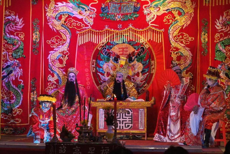Một điểm nhấn đặc biệt của lễ hội là nghi thức xây chầu – đại bội, mở đầu cho các suất hát bội dâng thần. Đây là sự kết hợp độc đáo giữa tín ngưỡng và nghệ thuật truyền thống, phản ánh rõ nét đời sống tinh thần của cư dân Nam Bộ xưa. Cuối cùng là nghi thức ẩm phước, khi lộc thần được chia sẻ cho người dân và du khách như một lời chúc may mắn.
