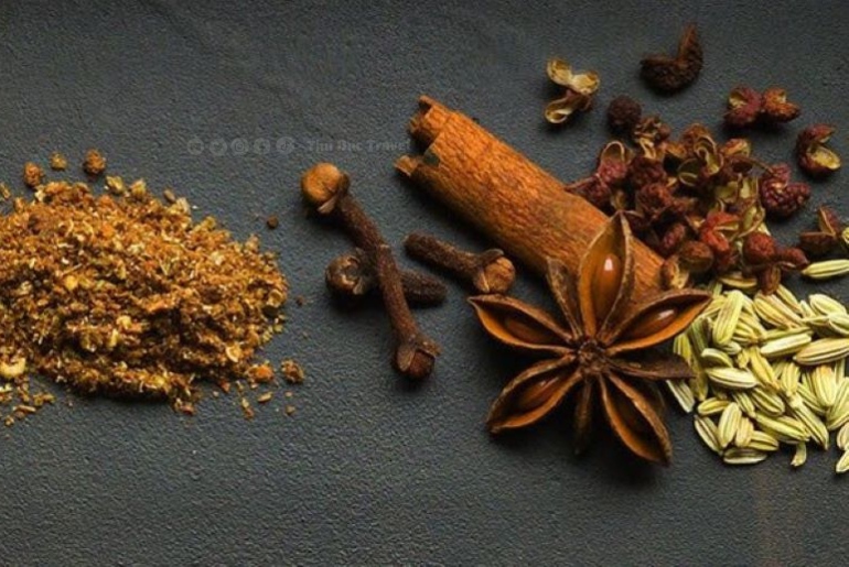 Phần làm nên linh hồn của nồi phá lấu chính là hỗn hợp gia vị: ngũ vị hương, quế, đại hồi, tiểu hồi, bột cà ri hoà quyện vào nhau tạo ra mùi thơm không lẫn vào đâu được. Nước hầm thường được thêm nước cốt dừa hoặc nước dừa tươi, tạo vị béo ngậy, ngọt nhẹ và màu sắc nâu ấm, sóng sánh đến mê hoặc. Toàn bộ được hầm trên lửa nhỏ — kiên nhẫn, chậm rãi — đến khi từng miếng nội tạng thấm đẫm gia vị và mềm đến mức tan ra ngay khi chạm lưỡi.