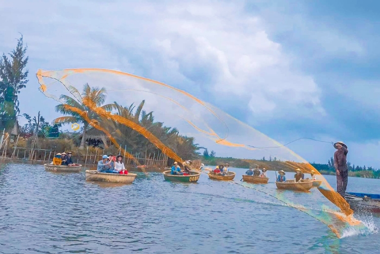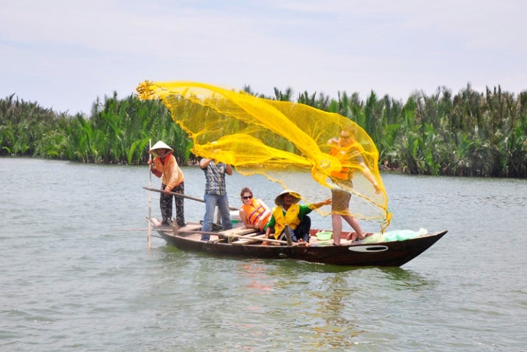 Giăng lưới bắt cá là một màn biểu diễn sinh động được nhiều người mong đợi khi đến rừng dừa Hội An. Bạn sẽ được tận mắt chiêm ngưỡng hình ảnh giăng lưới bắt cá mộc mạc, tài tình của ngư dân nơi đây.
