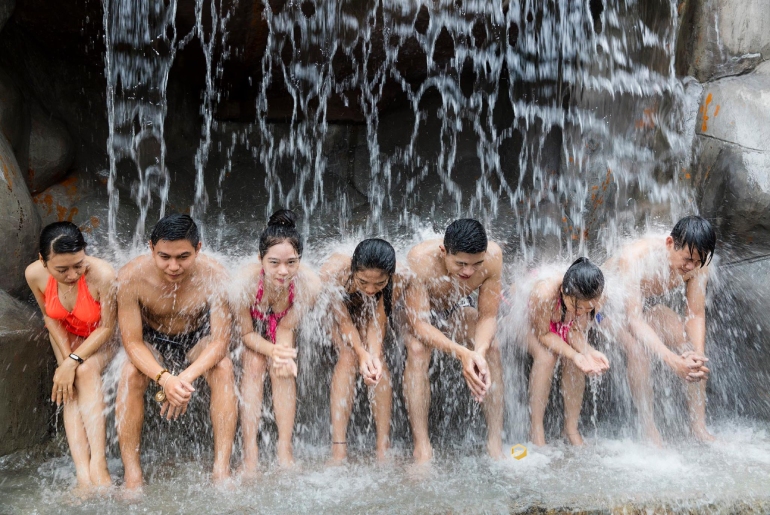 Công đoạn tắm suối khoáng di chuyển lại một khoảng cách chừng 50m gần bồn tắm khoáng nóng là có một cái thác dòng thác chảy xuống đó là nước khoáng nóng, bạn cũng có thể tắm suối khoáng nóng tại đây
