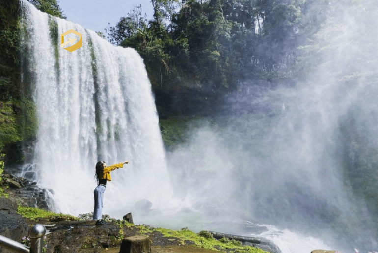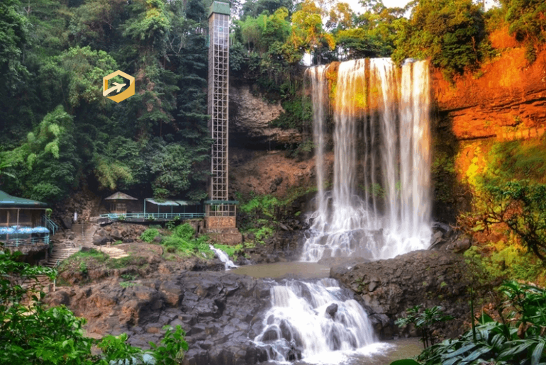 Đường lên thác có hai lựa chọn cho du khách: đi bộ dọc theo các bậc thang và đi thang máy. Từ trong thang máy, bạn có thể chiêm ngưỡng một Đambri thật hùng vĩ và sống động với những dòng nước cuộn xiết, hơi sương tung trắng xóa hòa lẫn vào mây tạo cảm giác như đang lạc vào chốn tiên cảnh có thực ở xứ trà Bảo Lộc.