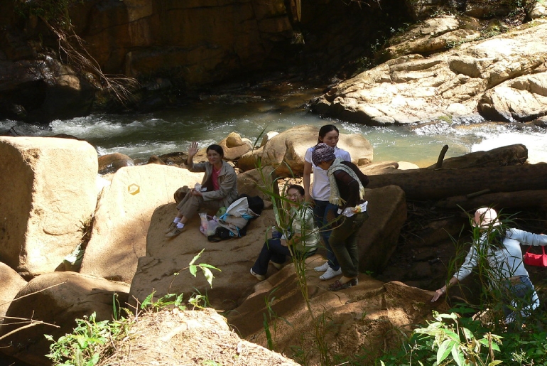 Thật kích thích khi từng bước chân của mình đang dần tiến đến nơi thác nước. Ngoài tiếng thác nước đổ vọng lại và tiếng chim rừng hót thì không gian xung quanh dường như tách biệt hoàn toàn với sự náo động ở phố thị, nó tĩnh lặng cảm giác khoan khoái rất dễ chịu. Tất cả làm bản thân bất cứ ai cũng muốn đi đến và khám phá nữa chứ không muốn dừng lại dù đã thấm mệt sau một quãng đường khá dài khi đến đây. Để đến đầu ngọn thác, phải lội qua một con suối nhỏ. Con suối vẫn còn được bảo tồn một cách khá hoang sơ và nguyên thủy.
