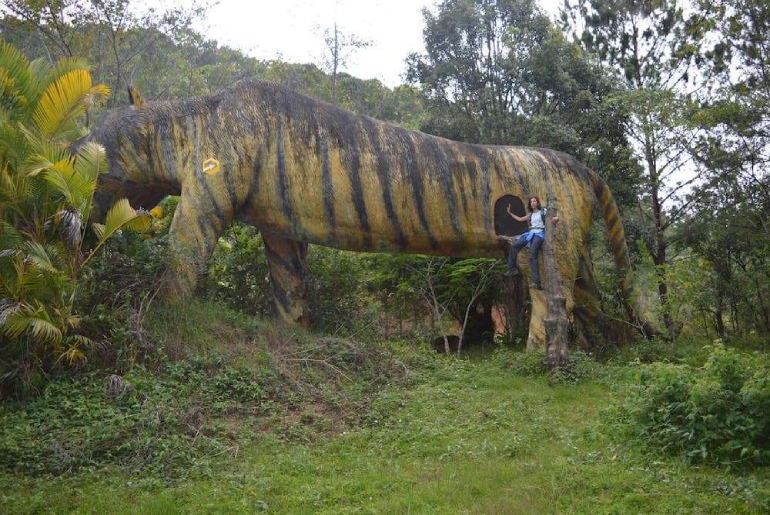 Nhưng nó vẫn được biết nhiều đến với cái tên là Hang Cọp. Dưới làm sương mỏng trong ánh nắng yếu ớt của buổi sớm mai, khu du lịch sinh thái Hang Cọp hiện ra với dáng vẽ hoang sơ và hùng vĩ như chính cái tên của nó. Qua hơn 5km đường đất quanh co dưới tán rừng thông, chằng chịt rễ cây thì khách du lịch đã nghe tiếng thác chảy réo rắt từ xa vọng lại.