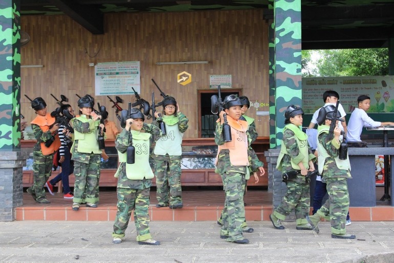+ Bắn súng sơn (giá vé 120.000 đồng/ suất): Đây là trò chơi có tính chất thể thao quân sự, đòi hỏi người chơi phải có kiến thức quân sự cơ bản. Trò chơi vừa mang tính chất tập thể đối kháng, có tính chỉ huy chặt chẽ, giúp người chơi rèn luyện khả năng phán đoán và xử lý tình huống linh hoạt, sáng tạo, rèn luyện thể lực và tinh thần đồng đội.