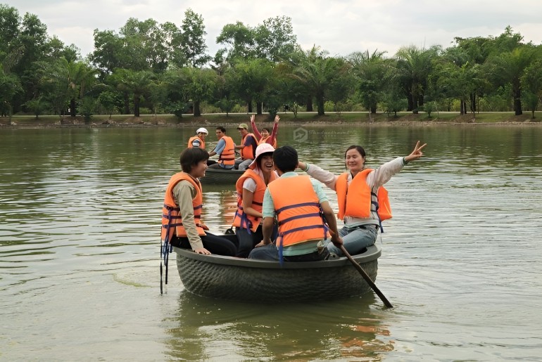 + Chèo thuyền thúng (giá vé 15.000 đồng -20.000 đồng/ 30 phút): Trên hồ nước Mẫu Tử mênh mông, thật thú vị khi được thử sức chèo lái trên những chiếc xuồng ba lá, thuyền kayak, thuyền thúng… bơi trên mặt nước xanh thẳm.