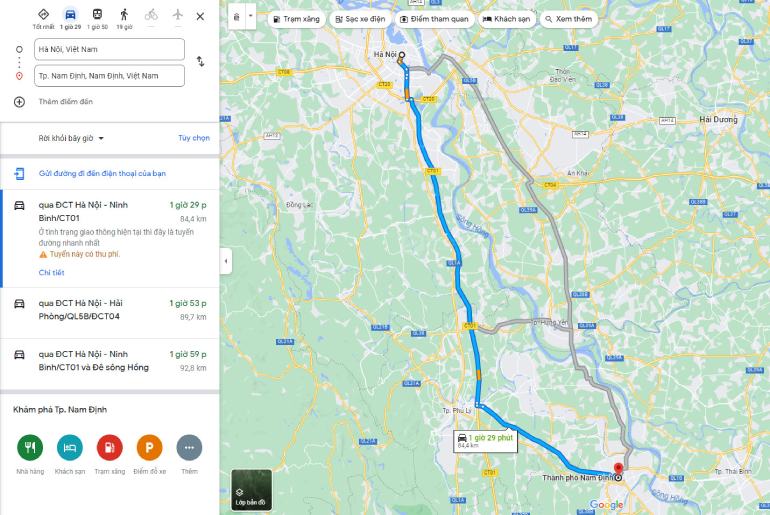 - Xe Ô Tô: Nam Định có hệ thống đường bộ thuận lợi với nhiều đường quốc lộ chạy qua. Từ Hà Nội đến Nam Định có 2 tuyến đường di chuyển: